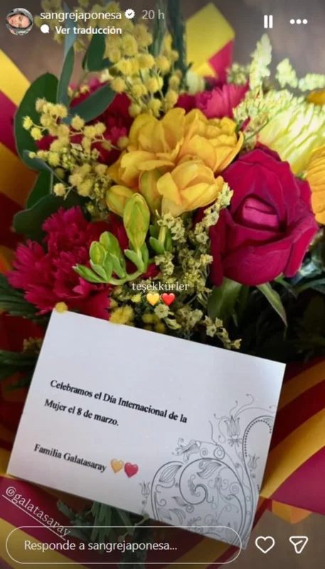 El club turco le envió un ramo de flores con los colores amarillo y rojo junto a una tarjeta que decía: “Celebramos el Día Internacional de la Mujer el 8 de marzo. Familia Galatasaray”.