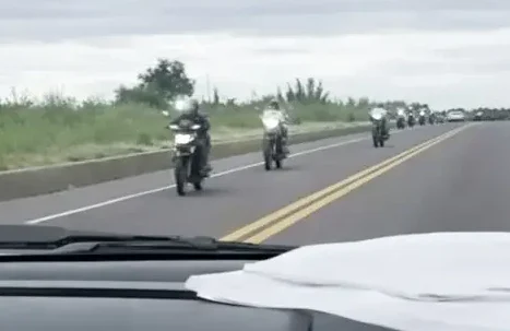 Las imágenes difundidas muestran una importante concentración de motociclistas detenidos a la vera de la ruta, mientras otros rodados avanzan a gran velocidad sobre la calzada.
