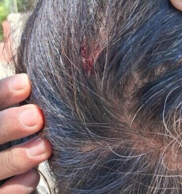 Una señora que transitaba por el lugar, y debió descender de su moto para abrir el paso de circulación de la calle Paz Posse, tuvo la mala suerte de sufrir un accidente en su cabeza, producto del desprendimiento de las ramas de los árboles.