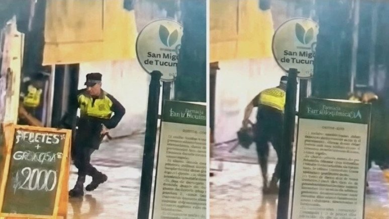 Un video de una cámara de seguridad en el microcentro de San Miguel de Tucumán desató una fuerte controversia institucional. En las imágenes, registradas a las 4 de la mañana bajo la lluvia, se ve a un grupo de policías interactuando y jugando al fútbol con un joven en la esquina de Crisóstomo Álvarez y Congreso.