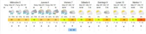 En cuanto al jueves, el SMN anticipa una continuidad de las lluvias, ya que se anuncian precipitaciones para toda la jornada, con algunas tormentas por la noche. Esto provocará que la máxima no supere los 23ºC, repuntando hacia el fin de semana.