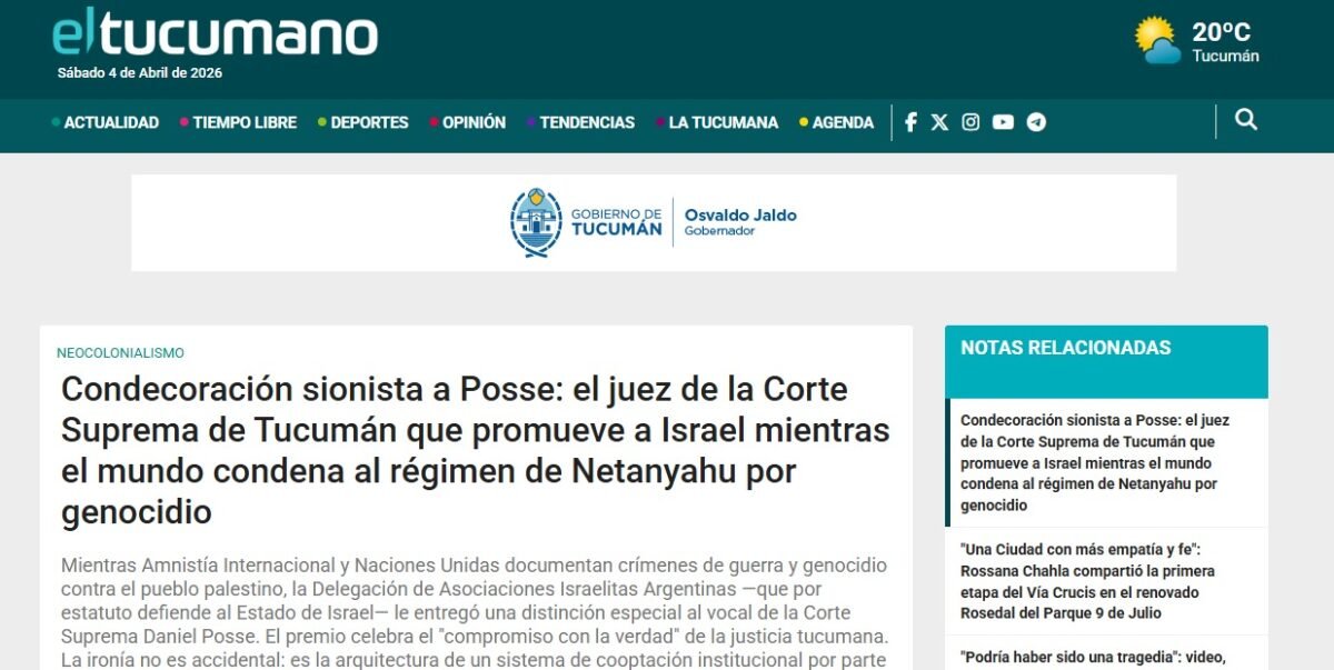 En las últimas horas, una publicación del portal del periódico “El Tucumano” ha encendido las alarmas sobre los límites del ejercicio periodístico y la preocupante infiltración de retóricas discriminatorias en el debate público. Bajo el título «Condecoración sionista …», el artículo no solo cuestiona la ética de un magistrado de la Corte Suprema local, sino que se sumerge en un terreno peligroso: el de la incitación al odio y la utilización de tropos antisemitas.