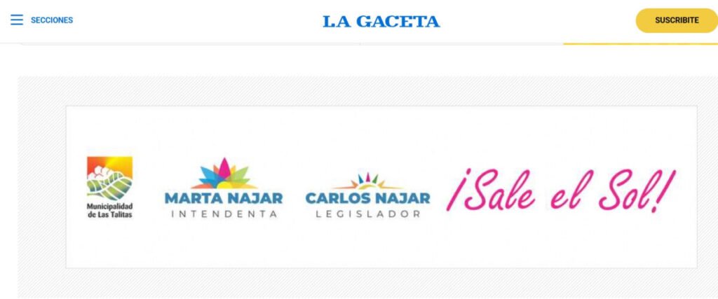 El municipio de Las Talitas de Marta Najar; cuenta con recursos necesarios para abonar jugosas pautas publicitaria en el Diario La Gaceta; pero no cuenta con recursos para remodelación, pavimentación, iluminación y sobretodo que los vecinos cuenten con agua potable. Mientras tanto, el Legislador Provincial y hermano de la Intendenta Marta najar se pasea todas las mañanas en los distintos bares del barrio norte.