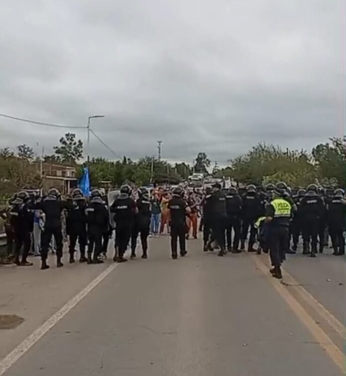 Vecinos de Lamadrid estaban marchando pacíficamente sobre la ruta 157 en reclamos de obras; y el personal policial comenzaron a reprimir para desalojarlo.