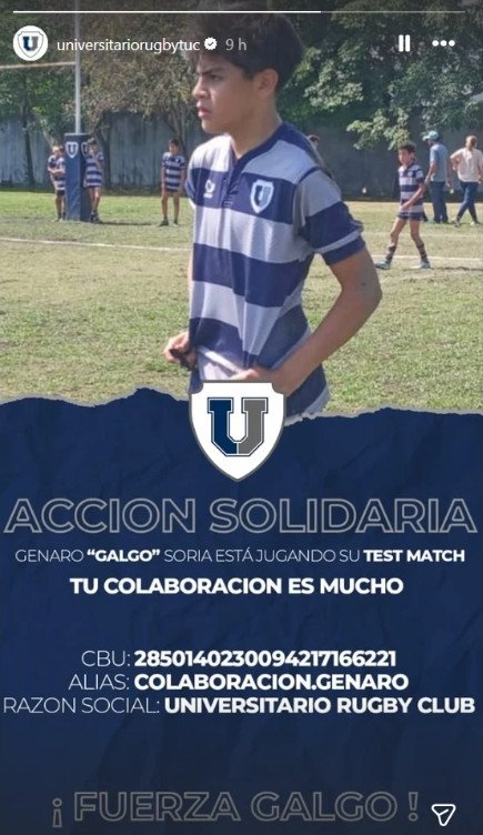 Genaro Soria, un joven tucumano de 16 años y jugador de Universitario hoy atraviesa un momento delicado de salud. Desde el Club Universitario han puesto en marcha una red de contención para apoyar a «Galgo».