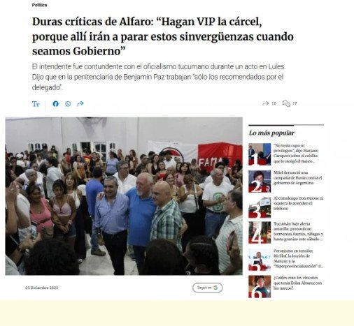 No solo pasó el tiempo; también transcurrió ese lapso desde que Alfaro aseguraba que Jaldo y Juan Manzur iban a terminar en el penal de Benjamín Paz porque el oficialismo era un «gobierno de sinvergüenzas».