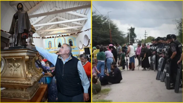 De un lado, el lenguaje de la fe, la liturgia y el consuelo. Del otro, el lenguaje del conflicto: cuerpos empujados, vecinos reprimidos, una ruta convertida en escenario de tensión social.