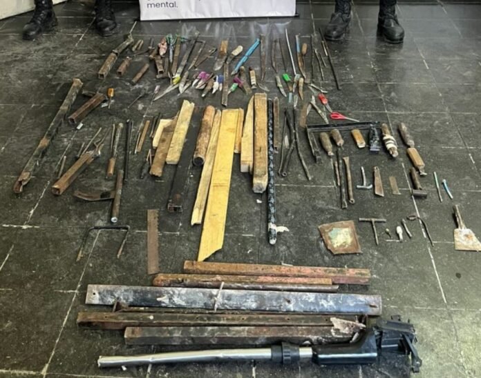 Entre los objetos incautados se destacan elementos contundentes y punzo-cortantes de fabricación rudimentaria, elaborados por los propios internos, además de teléfonos celulares y cartuchos de armas de fuego, cuya presencia dentro del establecimiento está prohibida.