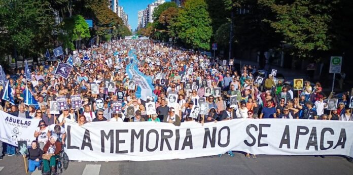 Durante la lectura también remarcaron: “Son 30 mil. Fue genocidio. No olvidamos, no perdonamos y no nos reconciliamos”, y reclamaron conocer el destino de las víctimas de la dictadura. Además, insistieron en la continuidad de la búsqueda de los nietos apropiados: “Esta historia no se cierra hasta encontrar al último de los nietos robados por la dictadura”.