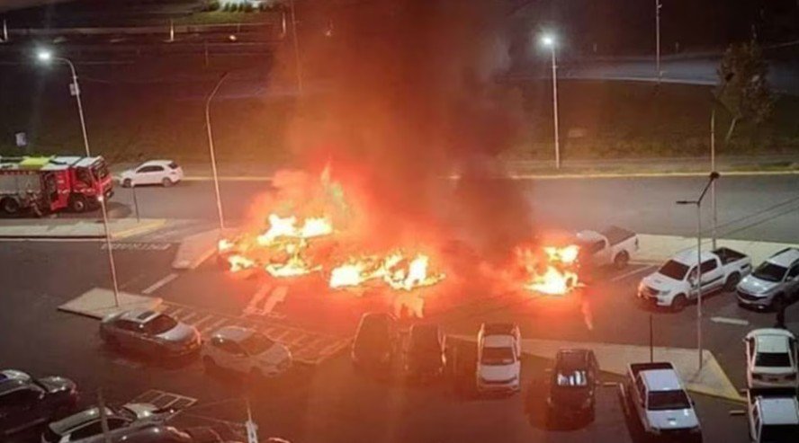 Un joven de 24 años sufrió heridas al tratar de rescatar de entre las llamas seis autos propios, de alta gama, que habrían sido incendiados por su ex pareja, con quien mantuvo una discusión por una supuesta infidelidad. El episodio ocurrió durante la madrugada frente al edificio de la Legislatura de Neuquén, sobre la calle Leloir, donde los vehículos fueron prendidos fuego presuntamente de forma intencional y sufrieron daños totales.