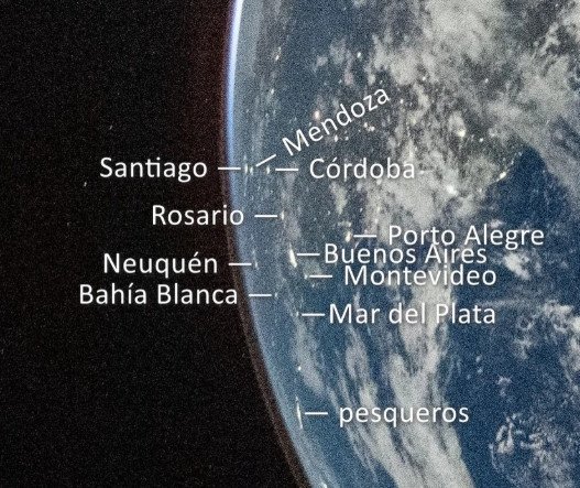 Neuquén, Bahía Blanca, Mendoza y hasta pesqueros en el mar argentino aparecen en la imagen nocturna que tomó el comandante de la misión a la Luna. España y África resaltan también en el globo celeste.