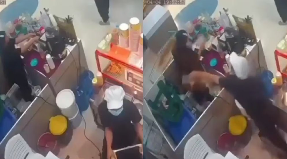 La víctima comenzó a gritar de forma desgarradora por el dolor y se cayó al piso, mientras su compañera salió corriendo para escapar de la escena. En ese momento, los demás colegas se acercaron desesperadamente a asistir a la joven, mientras que una persona que caminaba por el pasillo del restaurante logró retener a la agresora.