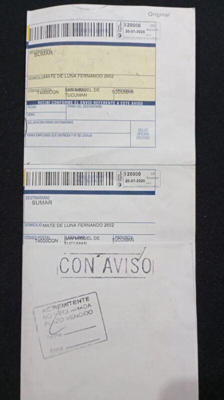 En ambos domicilios, nadie respondió a las visitas del cartero, quien dejo el aviso correspondiente, sin que las cartas tampoco hayan sido retiradas del Correo.