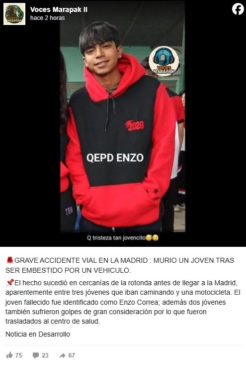 Como consecuencia del impacto, uno de los jóvenes, un adolescente de 16 años domiciliado en Lamadrid, falleció en el acto. Los otros dos menores que lo acompañaban, también de 16 años, sufrieron lesiones, aunque en principio no serían de gravedad.