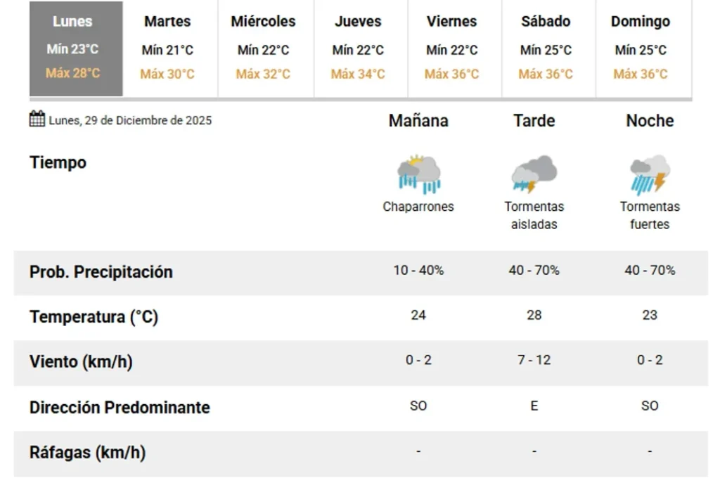 Según el organismo oficial, se prevén valores de precipitación acumulada entre 20 y 50 mm, que podrían ser superados en forma puntual.