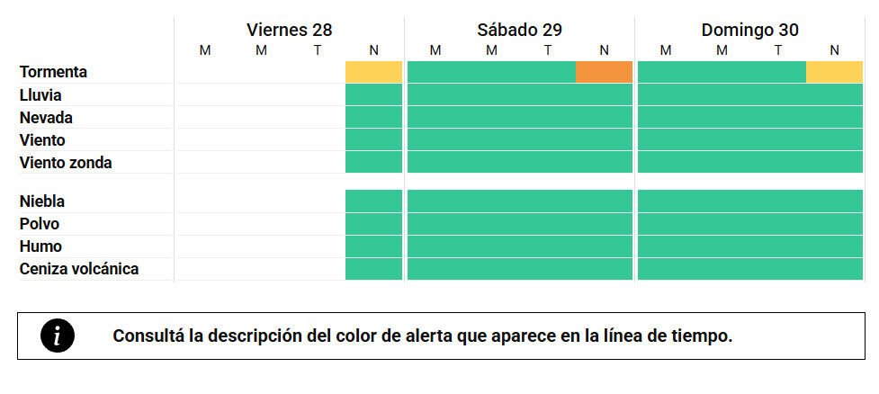 Según el organismo, las tormentas podrían presentarse con abundante caída de agua en cortos períodos, ráfagas y actividad eléctrica. El alerta naranja del sábado indica la posibilidad de fenómenos meteorológicos severos, por lo que se recomienda extremar precauciones, especialmente en zonas vulnerables a anegamientos. El domingo, aunque el nivel de alerta baja, se esperan nuevamente lluvias intensas durante la noche.