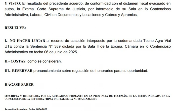 El máximo tribunal dejó sin efecto el vínculo con la empresa UTE TECNO AGRO VIAL, la firma que venía pleiteando para mantener la concesión. Este fallo representa un rotundo revés político y judicial para la administración de Alfaro, exponiendo irregularidades administrativas insalvables en la adjudicación de uno de los servicios más polémicos de su mandato.