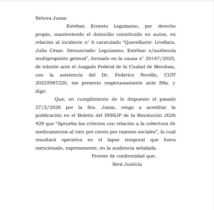 Ante las notificaciones penales y el avance del proceso, el titular del PAMI, Esteban Leguízamo, presentó un «acuerdo de reparación integral» ante la Justicia. El organismo adecuó sus normativas internas para implementar un sistema superador a través de la flamante Resolución RESOL-2026-428-INSSJP-DE#INSSJP.