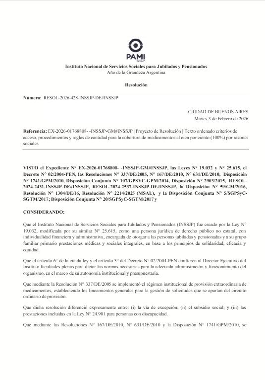 En una medida que impacta de manera directa y positiva en la salud y el bienestar de los adultos mayores en Argentina, el Instituto Nacional de Servicios Sociales para Jubilados y Pensionados (PAMI) oficializó una nueva resolución que no solo restituye, sino que amplía y mejora la cobertura del 100% en medicamentos.